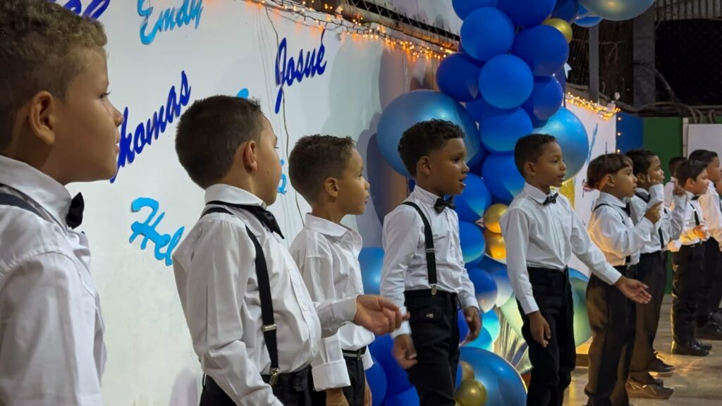 Wenn ein Kind nach drei Jahren die KiTa verlässt und fortan die Schule besucht, wird dies gebührend gefeiert. Neben Musik und Anspiel, einer Ansprache der Professoras nimmt die eigentliche Verabschiedung der Kinder natürlich an diesem Abend eine wichtige Rolle ein.