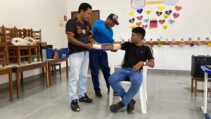 In der Musikschule bieten wir Unterricht in verschiedenen Instrumenten an. Dabei geht es nicht nur um musikalisches Können, sondern auch um die Vermittlung von Werten wie Zusammenarbeit, Respekt und Verantwortung. Vier unserer Schüler konnten dadurch in die Musikkompanie des brasilianischen Militärs eintreten. Die Stadt Cáceres fragt uns zudem regelmäßig zu öffentlichen Konzerten an, die ebenfalls eine gute Gelegenheit sind, Gottes Wort zu verkündigen.